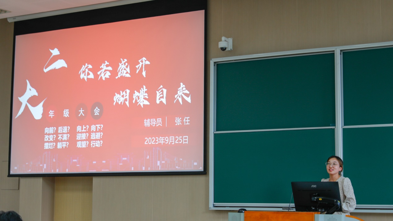 9月25日下午,食品学院2022级本科生军训动员大会暨学业生涯规划活动在第二教学楼2A127教室举行。党委副书记、副院长李雷,辅导员张任,优秀老生代表及2022级全体本科生参加活动。活动由张任主持。