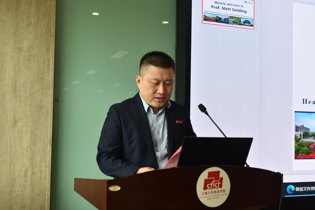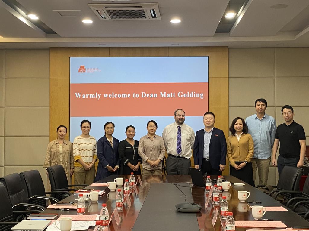 范大明代表学院对Matt Golding的来访表示诚挚欢迎。他简要介绍了学校、学院的办学特色等相关情况,回顾了江南大学与梅西大学在合作办学等领域的共同成果,并期待双方持续、深入地交流与合作。