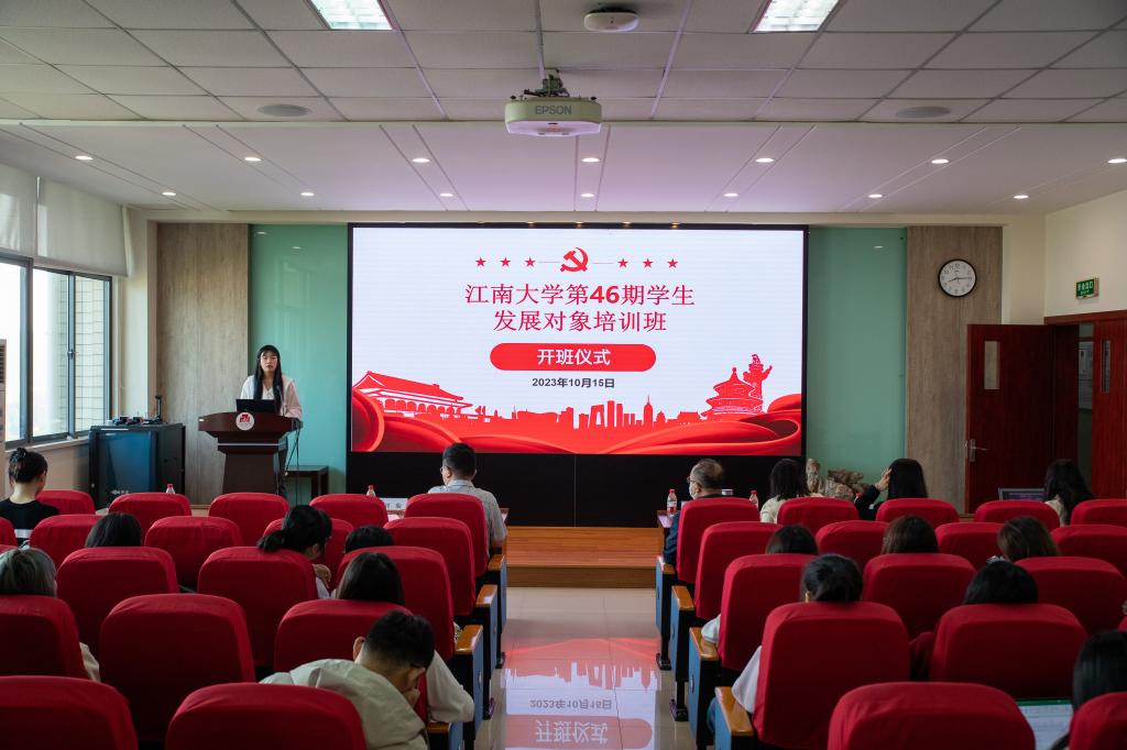 近日,由校党校主办、食品学院党委承办的江南大学联合分党校第46期学生党员发展对象培训班正式开班。来自食品学院、生物工程学院、化学与材料工程学院、无锡医学院、生命科学与健康工程学院等五个学院的122名发展对象参训。马克思主义学院教授、博士生导师万长松,食品学院党委副书记、副院长李雷,党建辅导员胡卉君、刘璇及本期培训班全体学员出席开班仪式。刘璇担任主持。