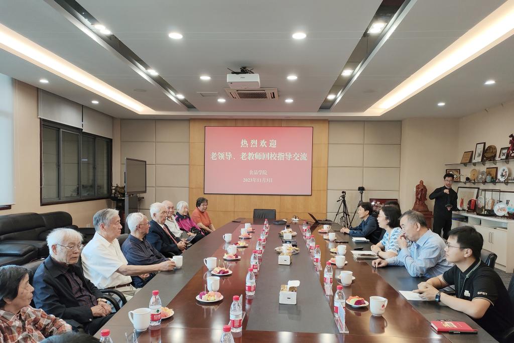 正值江南大学建校65周年之际,原无锡轻工大学副校长李礼尧、张瑞平,原粮油系、食工系主任吴嘉根,以及蔡绥志、倪培德、钟丽玉、吴沛民、邵伟良等8位老领导、老教师共同返校指导交流。校关工委常务副主任娄国栋,机关退休二支部书记于民基,食品学院原党委书记郭贯新、王海鸥,现任党委书记傅莉莉、党委副书记兼副院长李雷及青年师生代表参与座谈交流。