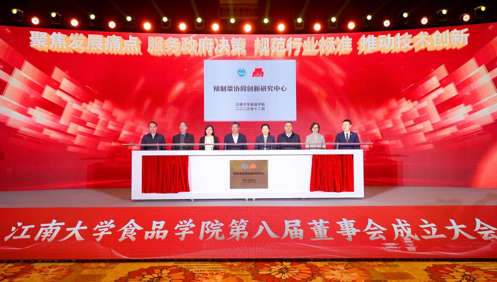 陈卫、金征宇、张影陆、邵薇、李宇飞、姜辉与江南大学食品学院院长范大明共同为“预制菜协同创新研究中心”揭牌。