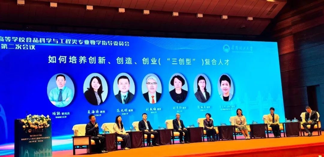 大会首次设置沙龙访谈环节。我校食品学院院长范大明教授参与该环节,并与来自其他高校、企业的代表围绕如何培养创新、创造、创业(“三创型”)复合人才进行专题交流,就课程体系建设、教师队伍建设、实习实践、校企合作和国际化等展开深入探讨。