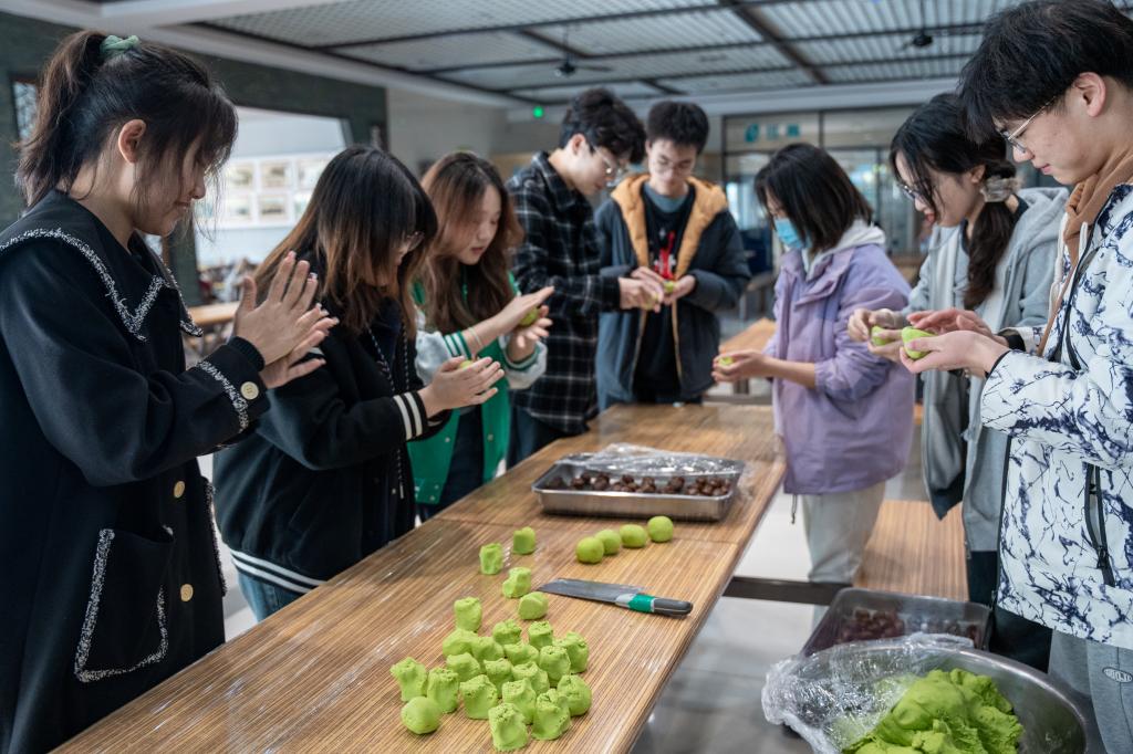 学生制作青团
