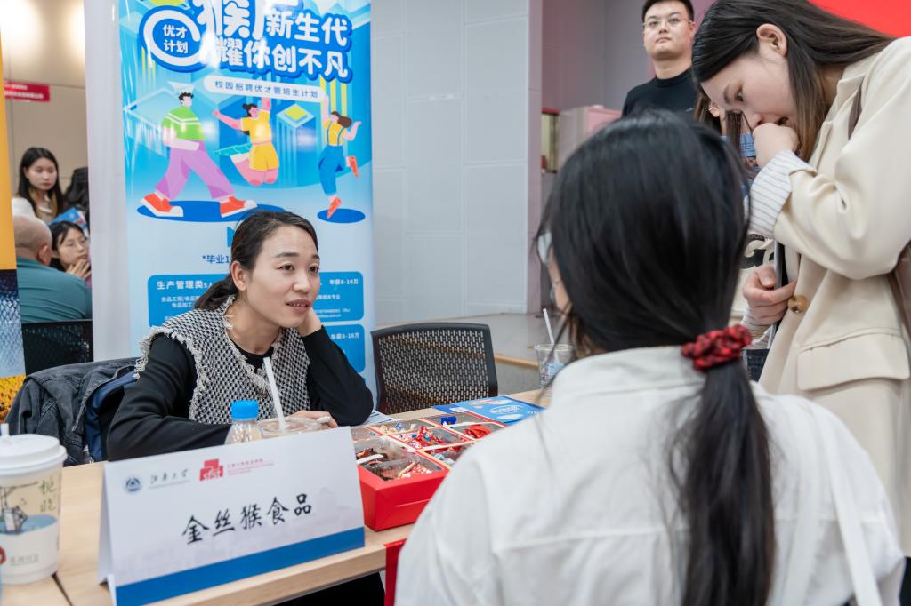 招聘会现场,各家单位通过海报、展板、手册、视频、产品实物等多种形式进行宣传,竞相抛出橄榄枝。前往应聘的同学针对就业地点、薪资待遇、发展理念、上升通道等内容与用人单位深入交流。部分单位现场开展面试,与学生达成初步签约意向。一些人力资源官表示:“江南大学食品学院具有雄厚的实力和鲜明的特色,人才培养质量值得我们信赖,希望能有更多贵校学子加入进来,和我们一起创造未来!”