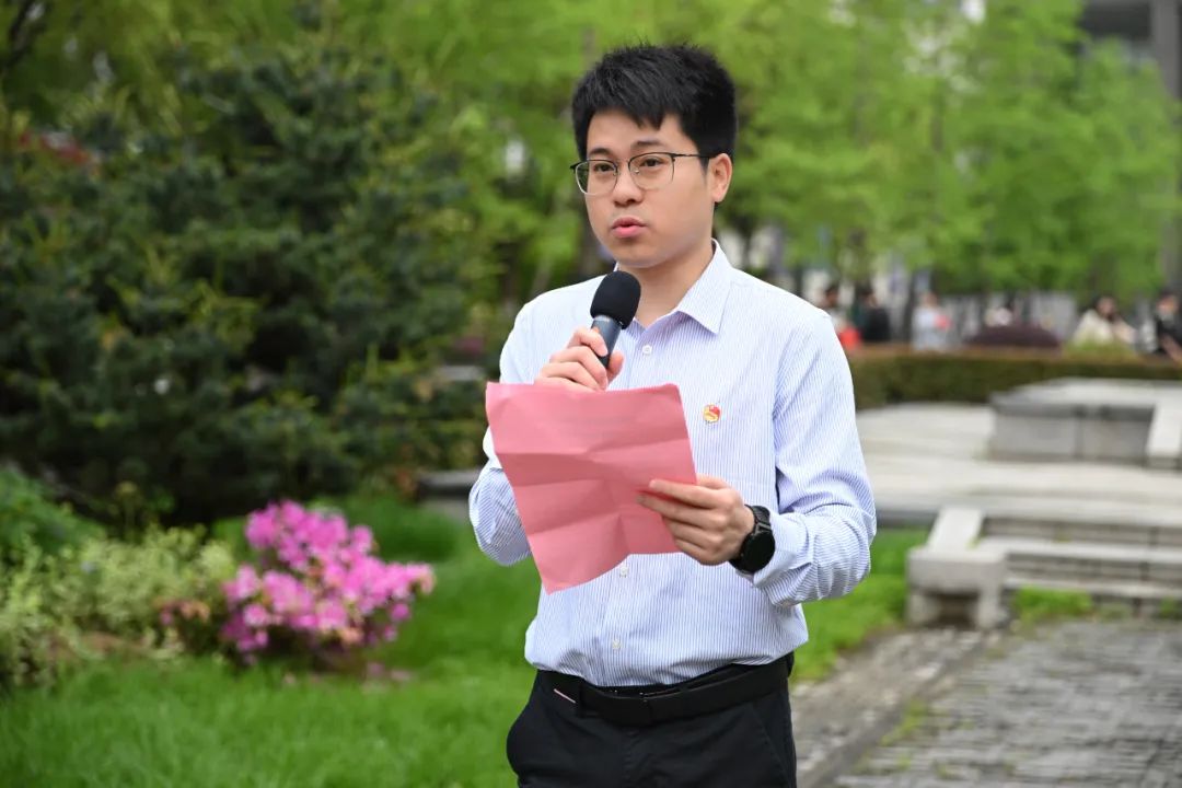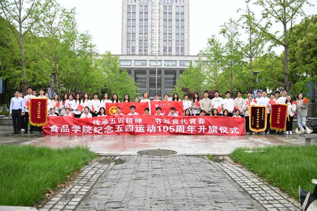 为纪念五四运动105周年,4月29日,食品学院在图书馆前世纪广场举行“传承五四精神 书写食代青春”主题升旗仪式。食品学院分团委书记李金杰,辅导员曹敏、张任,食质 2102“远望号”特称团支部,食科2104“荣毅仁”特称团支部,食科2202“雷锋”特称团支部,学院团务中心等团员代表60余人参与活动。