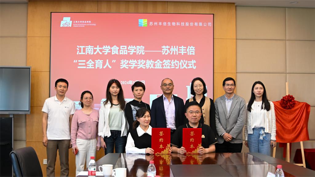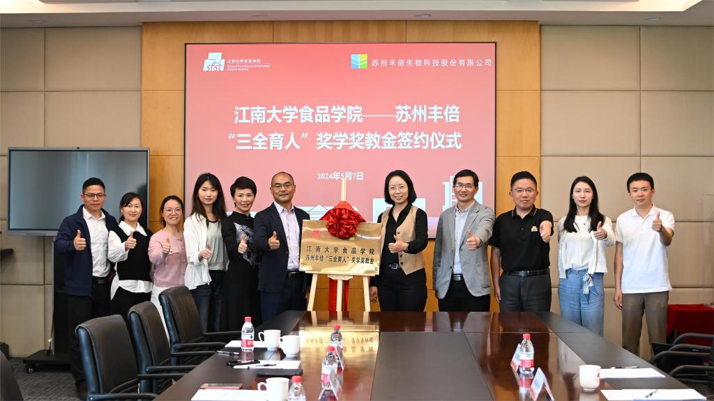 据悉,此次苏州丰倍在江南大学设立首个学院层面以“三全育人”为主题的奖学奖教金,旨在积极构建企业和高校之间的产教融合创新平台,全力支持江南大学食品学院立德树人、率先垂范,为健康中国建设和国计民生发展贡献源源不断的智慧和力量。