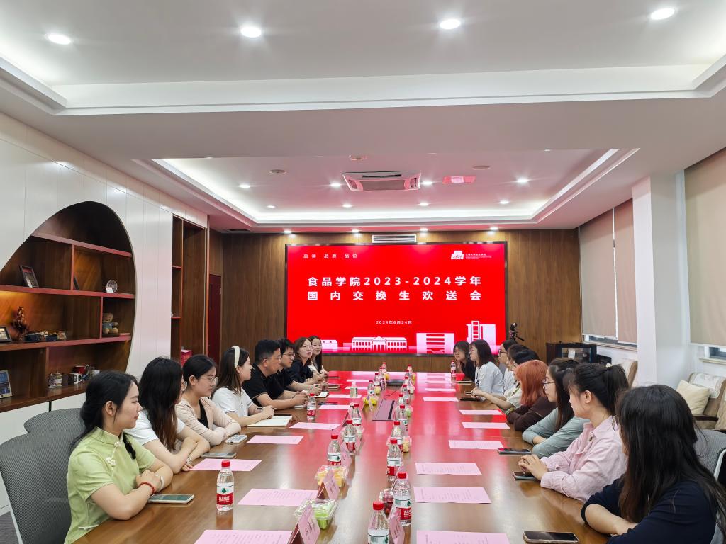 6月24日下午,食品学院2023-2024学年国内交换生欢送会在学院D925会议室顺利举办。学院党委副书记兼副院长李雷、学工办主任兼分团委书记李金杰、2021级本科生辅导员曹敏及来自台湾实践大学、石河子大学、山西师范大学的22名交换生参加活动,欢送会由2022级本科生辅导员张任主持。