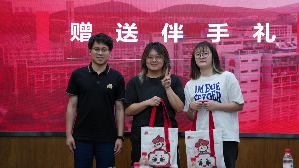 倾情定制,佳礼相赠。李金杰、曹敏、张任分别向同学们赠送学院文创大礼包,希望大家可以铭记在江南大学食品学院的美好时光,未来取得更大的进步。