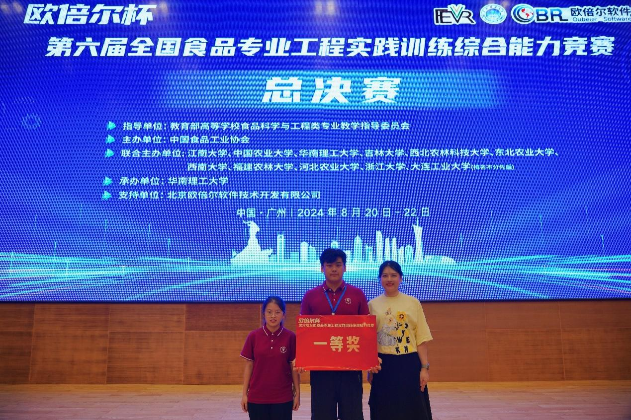 近日,由教育部高等学校食品科学与工程类专业教学指导委员会、中国食品工业协会、江南大学等高校联合举办的“欧倍尔杯”第六届全国食品专业工程实践训练综合能力竞赛在华南理工大学开赛。经过激烈角逐,由食品学院李阳阳、李艾申、朱俊喆组成的江南大学代表队在45支参赛队伍中脱颖而出,荣获一等奖,江南大学荣获“优秀组织奖”,张龄之老师荣获“金牌裁判奖”。