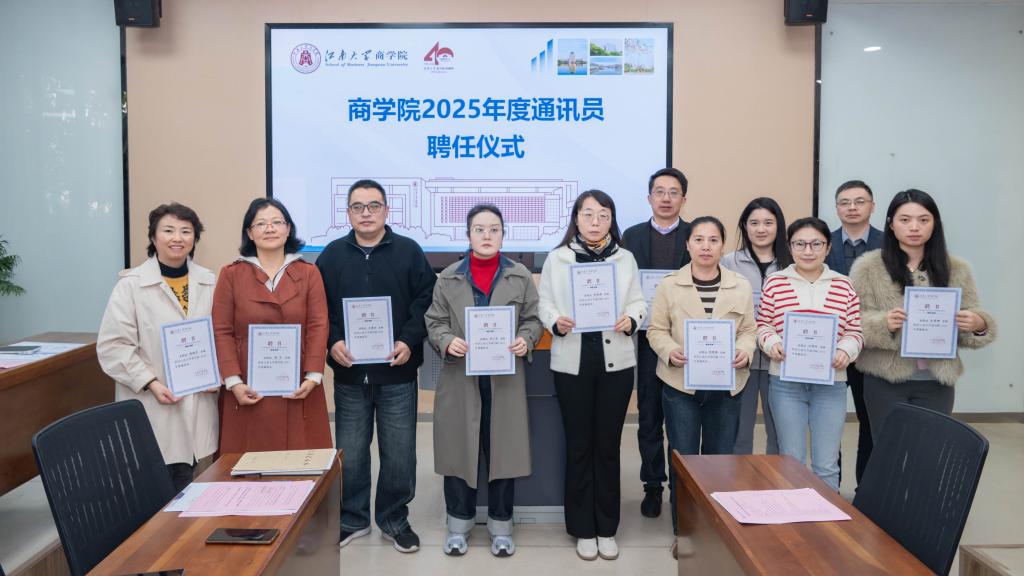 为进一步强化宣传队伍建设,学院聘任各条线、各部门、各基地新闻宣传负责老师以及各师生党支部宣传委员为学院2025年度通讯员。王雷为商学院师生通讯员颁发聘书。
