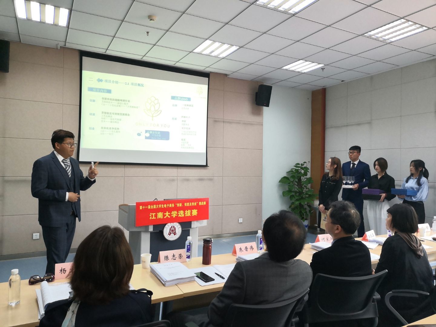近日,第十一届全国大学生电子商务“创新、创意及创业”挑战赛江南大学选拔赛在商学院119会议室成功举办。本次选拔赛由江南大学学生工作部(处)主办,商学院承办。
