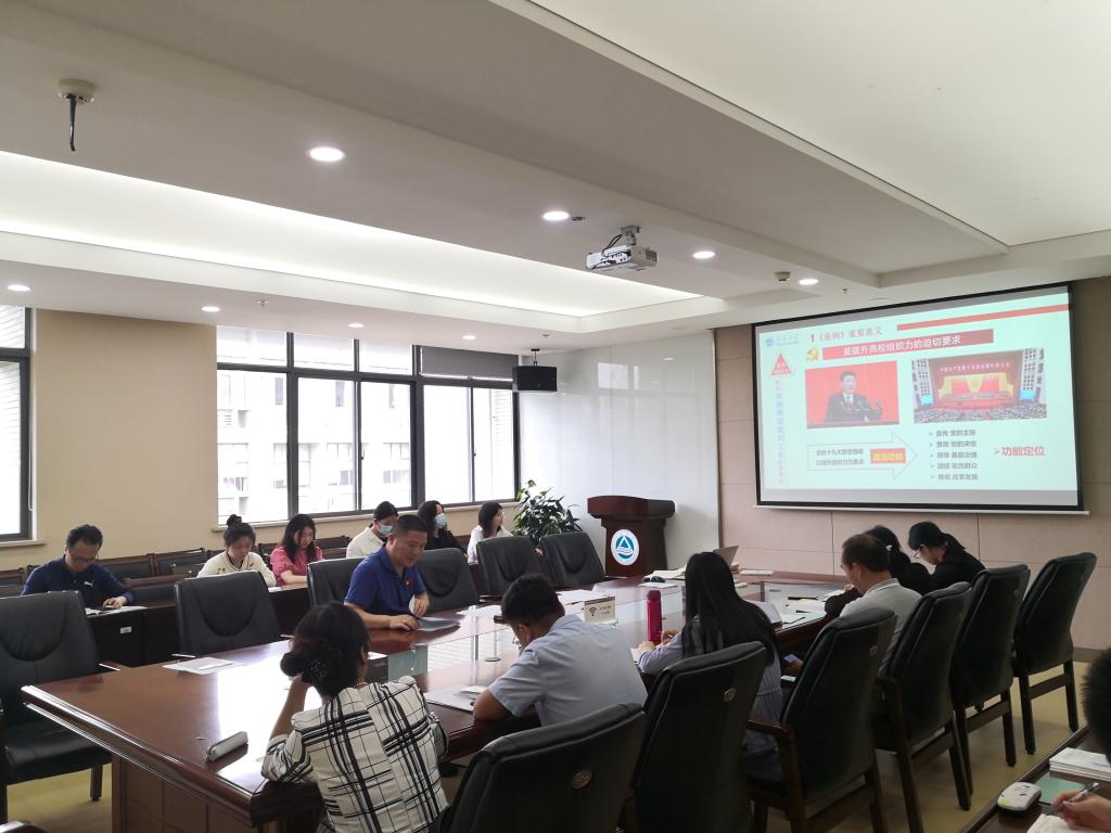 会议还就“江南大学优秀共产党员、优秀党务工作者、先进基层党组织推荐评选工作”进行布置,并就各支部党史学习教育开展情况进行交流,对下阶段党支部书记讲党课、主题党日活动、高知群体中发展党员工作等开展进行部署要求。