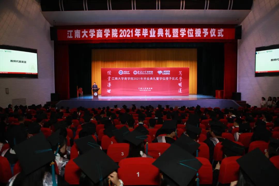 毕业典礼结束后,商学院2021年学位授予仪式举行。学院领导为688名毕业生拨穗正冠、颁发学位证书并合影留念,为同学们在江南大学的学习生涯画上完满句号。