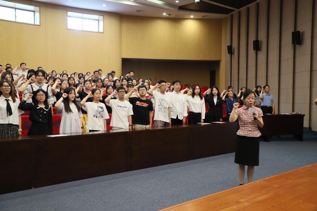 为庆祝中国共产党成立100周年,深入开展党史学习教育,教育引导广大党员师生提升责任感和使命感,6月29日下午,商学院党委在远东报告厅举行“七一”新党员宣誓暨党课教育活动。商学院党委书记徐锡清、党委副书记兼副院长徐静、教职工党员、75名新发展学生党员以及结对共建的机关党委审计处党支部成员参加此次活动。
