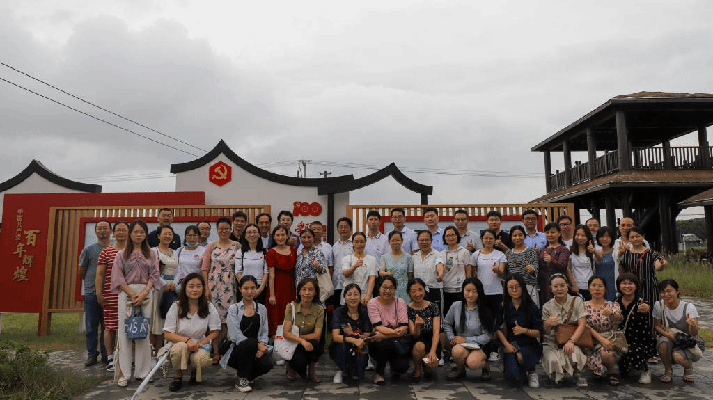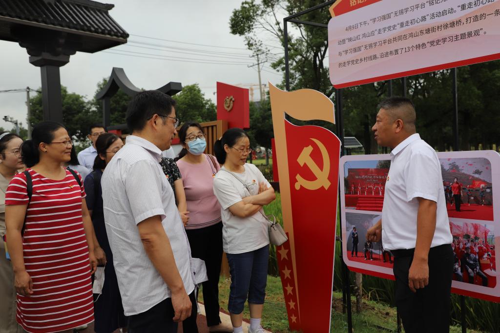 深入推进党史学习教育,抓实学院“七个一百”行动计划,9月29日下午,商学院党委书记徐锡清、副书记徐静带领学院教工党员一行50人前往无锡鸿山街道东塘街村,体验“重走初心路”学党史特色乡村线路,开展沉浸式的党史学习教育主题党日活动。鸿山街道东塘街村党支部书记、主任周伟陪同考察学习。