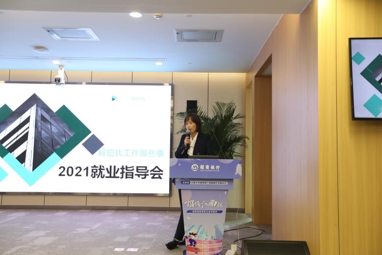 求职指导课共分为两部分,由分行人力资源部总经理徐鑫先生详细讲述了招商银行的发展历史、企业文化及招聘考核标准。接着,由特约人力资源培训讲师蒋丽君讲解了“‘职’点迷津——解密找工作那些事”专题就业指导课。