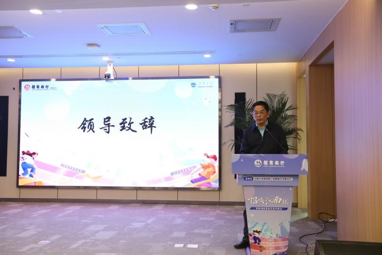 求职训练营开幕式环节上,双方领导依次进行讲话。招商银行无锡分行副行长孙荣海对师生们的到来表示了热烈的欢迎并对招商银行的发展历史进行了介绍。他表示,招商银行积极实行人才发展战略,也欢迎江南大学各专业高质量人才来行就业。徐锡清对招商银行无锡分行对本次活动的大力支持表示感谢,对校企融合发展模式表达了殷切的期望并对招商银行的发展前景及双方长期共建交流机制探索表示高度肯定。他指出,在秋季招聘季节举办此次求职训练营暨企业开放日活动正当其时、意义重大,希望双方保持良好的沟通与合作,始终坚持互信共赢,努力为社会、经济发展贡献更多的高质量人才。