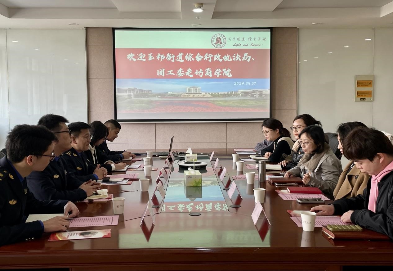3月7日下午,无锡市玉祁街道综合行政执法局及团工委一行10人赴商学院座谈交流,玉祁街道综合行政执法局副局长刘希、玉祁街道团工委书记顾岑、商学院党委副书记兼副院长徐静出席本次活动,参加本次活动的还有玉祁街道综合行政执法局第八党支部及团工委成员、商学院辅导员及学生骨干代表。交流会由商学院分团委书记王璁主持。