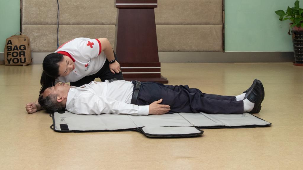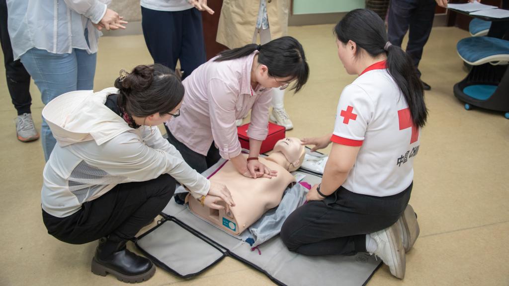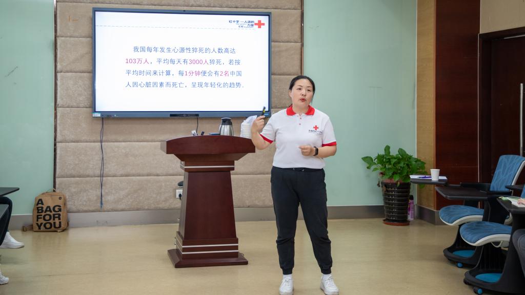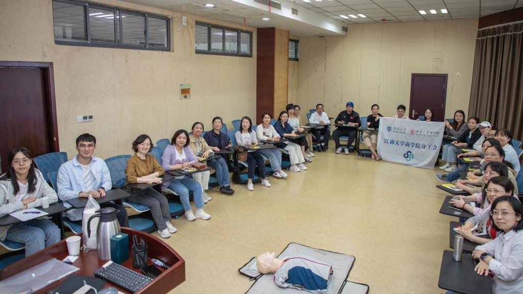 夏日初至、万物竞发,江南大学校园生机勃勃。5月16日下午,在江南大学校医院的大力协助下,商学院24位教师在商学院117教室参加了由无锡市红十字会举办的“救在身边”应急救护培训。红十字会的应急救护培训讲师谈晓颖具备丰富的急救经验,她用一系列生动的动画视频,揭秘了心肺复苏的科学原理,以及黄金四分钟内为大脑和心脏供血的至关重要性;她通过无锡市马拉松现场急救的真实视频,展示了自动体外除颤仪(AED)在挽救生命方面的“超能力”;她用一段儿童吃樱桃堵塞气管的真实录影展示了慌乱的家长如何用海姆利克急救法成功救助孩子的惊心一刻,令人印象至深。