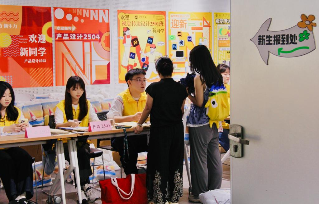晨曦微露,学长学姐与志愿者们已静静守候在校园四处。从学院门口到报到点,从指引路线到答疑解惑,他们用微笑融化初见的羞涩,让每一刻抵达都浸润着家的暖意。7时38分,刘婧博同学作为第一位报到新生,为这个清晨注入首缕热闹。一张张崭新的校园卡,不仅是身份的认证,更是通往知识瀚海与创意远方的第一把密钥。