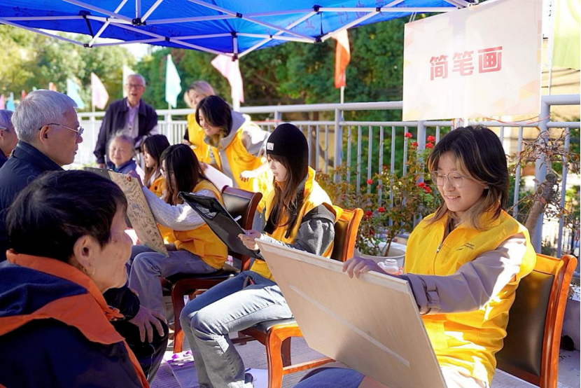 近日,设计学院“益”起设计志愿服务团开展“丹桂飘香绘温情”百幅肖像志愿活动,用20分钟定格60年光阴,以专业所学向学校老一辈建设者致以节日敬意。
