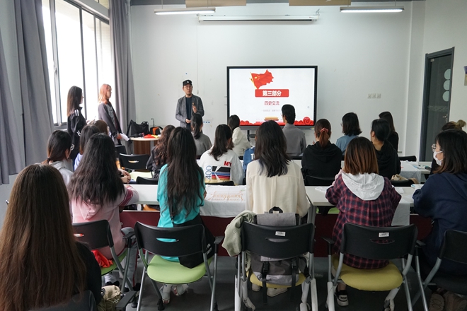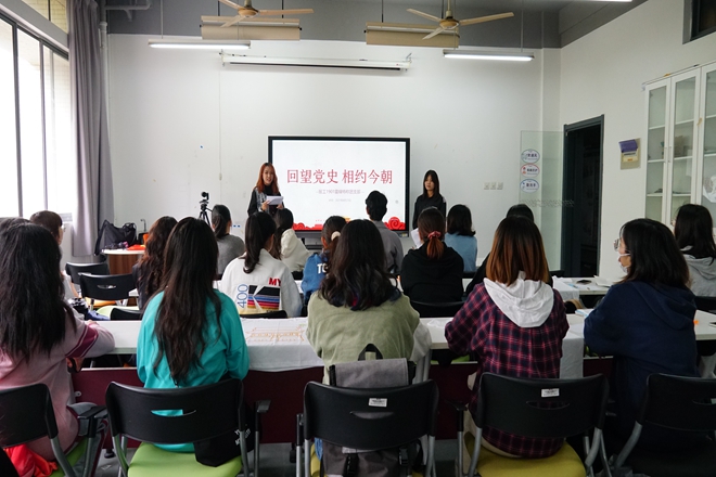 吴晓博选取了1921年中共一大等党史上的重要时间节点,讲述了中国共产党从点燃星星革命之火到带领中国人民走向现代化的艰辛历程。牛艺诺结合专业知识,带领团员通过服装行业的变迁共同感受党史中充满激荡、激情、激越的改革开放时代。大家共同观看视频《周恩来的故事》,影片通过总理对侄子侄女们的教育展出中国共产党党员始终不忘初心、忠诚清廉的优良品质。