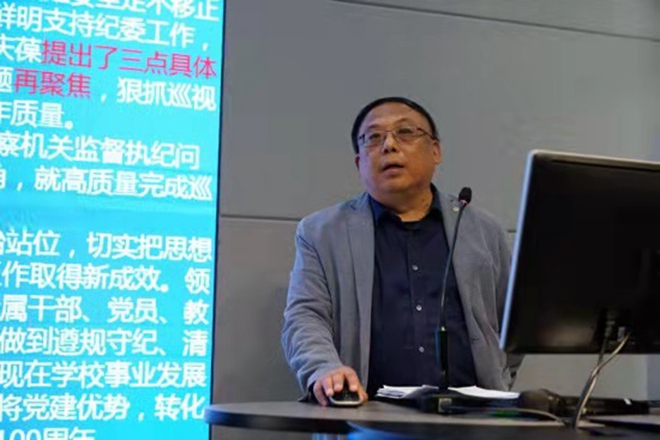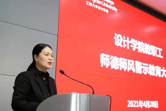 4月28日下午,设计学院深化全面从严治党暨师德师风警示教育大会在学院报告厅举行,学院全体教职工参加会议,会议由院党委书记邱建平主持。