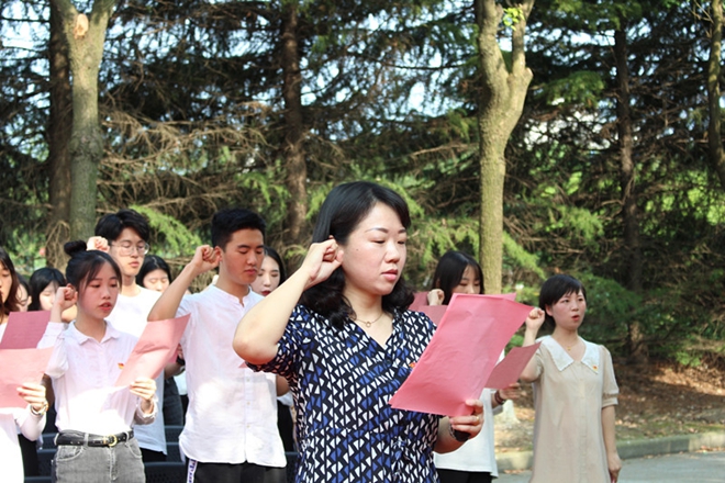 在庆祝建党一百周年之际,学院党委积极营造学习氛围,扎实推进党史理论学习。利用优秀党员、设院校友等的先进事迹,春风润物,内化于心,引导广大学生党员传承红色基因、凝聚奋进力量。宣誓仪式是庄严的一课,通过此次仪式,新党员纷纷表示:在今后的学习工作中将以责履誓、以行践诺。以党的光荣传统和优良作风坚定信念,以昂扬的精神状态践行誓言,以实际行动庆祝中国共产党成立一百周年!