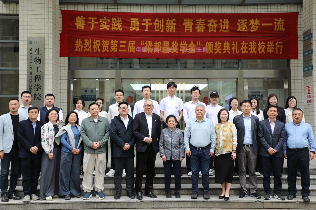 4月22日下午,江南大学第三届“梁邦昌奖学金”颁奖典礼在生物工程学院举行。梁邦昌先生夫人叶秀英女士及家人、亲友,秦含章先生之子秦大文,江苏省收藏家协会酒类收藏专业委员会会长张继斌、常务副会长陈先、秘书长孙年华,江苏省酒类行业协会酒文化专委会常务副会长王树柏,洋河股份中国酿造史研究中心主任薛化松,江南大学原副校长、生物工程学院徐岩教授,生物工程学院党委书记程捷音,范文来教授等出席颁奖典礼,活动由学院党委副书记、副院长林丹主持。