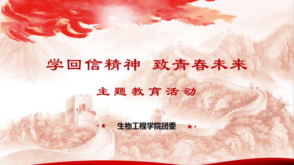 近期,习近平总书记给全国青联学联的贺信在广大青年中引发热烈反响,在贺信中,习近平总书记寄语我国广大青年要坚定理想信念,培育高尚品格,练就过硬本领,勇于创新创造,艰苦奋斗,同亿万人民一道,在奋斗中谱写新时代的青春之歌。为号召生工学子全面了解和准确把握全国学联二十七大精神,深刻领悟总书记对青年学生的殷殷关怀与谆谆教导,传达学习领会习近平总书记贺信精神和党中央致词精神,生物工程学院分团委开展了“学回信精神,致青春未来”主题活动。