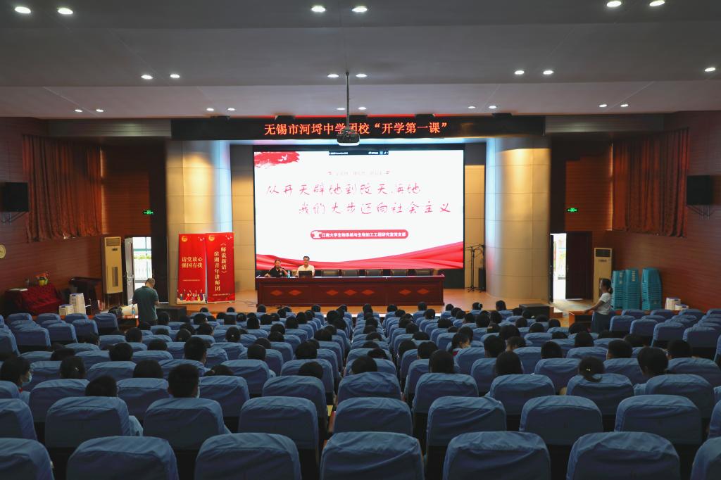 9月6日—7日,江南大学生物工程学院“百年大党正年轻”党史宣讲团、滨湖青年讲师团赴河埒中学、蠡园中学开讲“开学第一课”。全国高校“百名研究生党员标兵”雷庆子和全国高校“百个研究生样板党支部”生物系统与生物加工工程研究室学生党支部书记张海云同学开讲题为《从开天辟地到改天换地,我们大步迈向社会主义》的主题党课,近千名中学生聆听讲座。