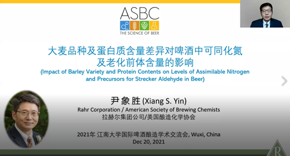 12月21日,2021国际啤酒酿造技术学术论坛(The 2021 International Symposium on Beer Brewing Technology)以线上方式成功举办。本次会议由江苏省酒类行业协会、江南大学生物工程学院联合主办,来自江南大学、美国拉赫尔集团公司、加拿大曼尼托巴大学、德国柏林工业大学、捷克布拉格化工大学以及国内外啤酒酿造行业技术人员共约400余人参与了本次线上论坛。