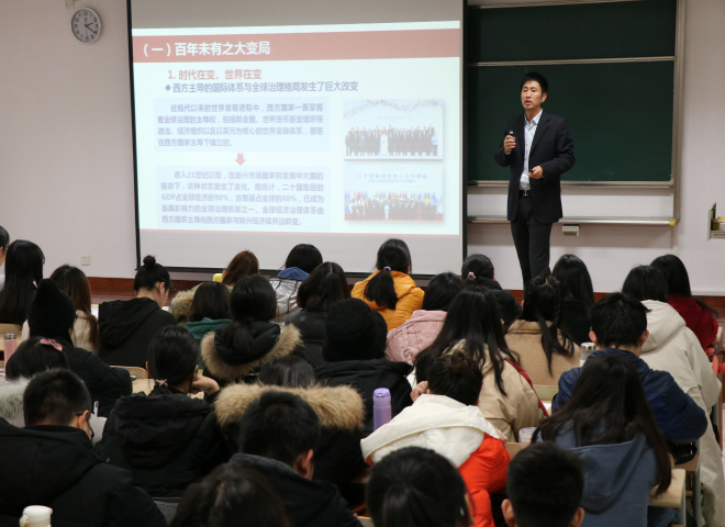 校领导给外国语学院学生上形势与政策课
