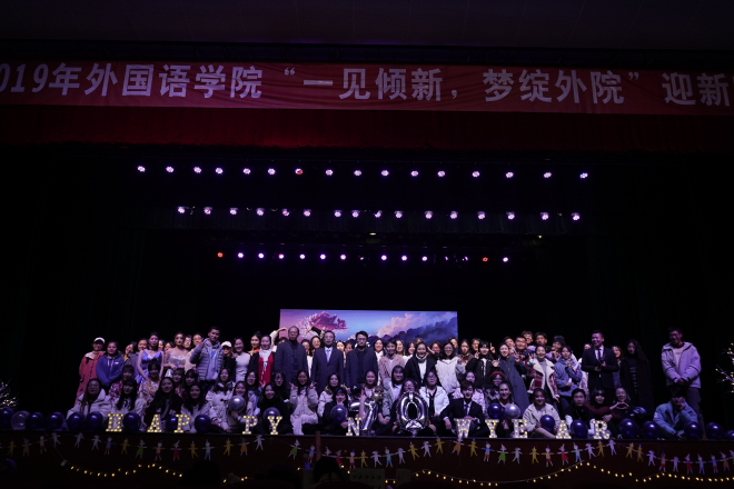 在新的一年里,遇见更好的自己。外国语学院“一见倾新,梦绽外院”迎新晚会于2019年12月20日晚18:30在文浩馆如期举行。外国语学院党委书记黄城芳,党委副书记、副院长刘伯贤,副院长朱义华,副院长施惠平,办公室主任华芒,分团委书记杨艳,辅导员老师以及各位班主任老师出席迎新晚会。学院各年级学生热情参与,师生同乐,欢聚一堂。