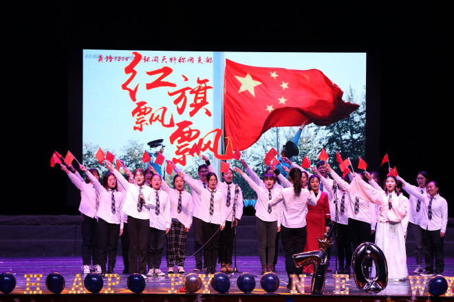 晚会开场由勿氧器乐团带来《董小姐》,气氛热烈,燃爆全场。随后,晚会正式开始,由外院各位老师录制的祝福视频展现了外国语学院温暖大家庭的温馨氛围,同时表达了各位老师对同学们的衷心祝福和殷切的期望。接下来十三个节目依次精彩呈现,古风舞蹈《清平乐》舞步优美,极具中国风的优雅与端庄;小品《我是李焕英》既有风趣幽默,也有温情动人,演员精彩的表演让我们在欢声笑语中体会到真情的价值;八协音乐社带来改变歌曲《八月十五忆吃面兄弟》,年轻富有朝气的歌词和曲风点燃现场气氛;院艺术团带来的舞蹈《ADIOS》青春活力,展现了外院活力向上的学习风貌;由范喆老师和研究生张倩瑶带来钢琴小提琴合奏曲目《Adagio》,为大家呈现了音乐盛宴;英日文歌曲串烧《Oops,樱花》歌曲轻快活泼,展现了外院学子扎实的语言功底;19级带来了情景剧《来自江南的白雪》融合当下幽默喜剧元素,展现了19级新生极佳的创意;激情活力的爵士舞《bang bang》,活力四射,瞬间点燃全场同学的热情;器乐《大鱼海棠》宛转悠扬,中国风浓郁;18级特称团支部带来的红歌《红旗飘飘》为祖国母亲70华诞献礼;19级辅导员携手副班带来舞蹈《遇见青春》,轻快可爱的舞步洋溢着青春气息;钢琴伴舞《樱花》动听美妙,舞姿柔美动人;最后外院学生会为大家带来大合唱《我的秘密》,晚会在热烈的气氛中圆满结束。
