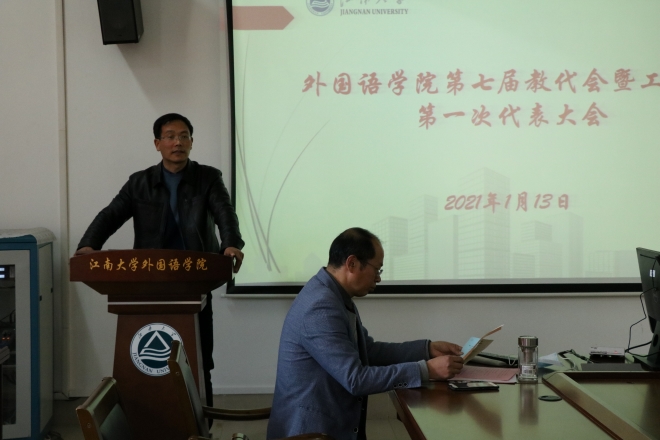隆冬时节,阳光灿烂。2021年1月13日下午,外国语学院在文科楼A349召开第七届教代会暨工代会第一次全体会议,学院全体领导班子成员参加会议,共有40名教师代表参会。会议由学院副书记刘伯贤主持。