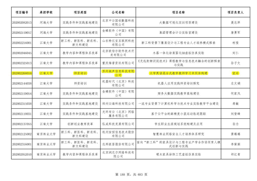 为深入贯彻《国务院办公厅关于深化产教融合的若干意见》(国办发〔2017〕95号)精神,根据《教育部高等教育司关于公布有关企业支持的产学合作协同育人项目申报指南(2020年第一批)的通知》要求,外国语学院组织一线教师积极申报,团队负责人精心指导、严格把关,经教育部产学合作协同育人项目专家组核定,大外部宣泠老师申报的《大学英语混合式教学教师学习共同体构建》于近日获得正式立项。