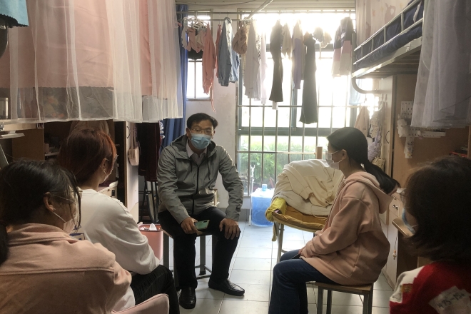 4月3日上午,史志洪作为浩苑62-102宿舍的联系党员对学生进行了探望慰问。史志洪首先关心了102宿舍的同学们在疫情期间的学习、生活情况,提醒学生做好自我保护、保持良好心态。史志洪关切地询问了同学们对未来发展的想法和规划,并结合四位同学的目标给予了自己的建议,为同学们指明了路径和方向。此外,史志洪希望同学们可以在未来的学习过程中相互帮助,注重提升自己的政治素养,积极向党组织靠拢。他表示,自己作为宿舍导师会尽己所能为她们提供帮助。同学们对老师的到来感到很开心,能与宿舍导师的面对面交流也让他们倍感温暖,大家都十分感谢学院的关心和指导。