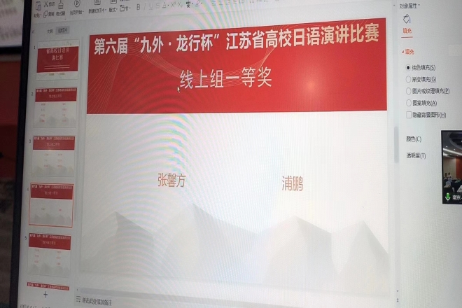 12月10日第六届“九外・龙行杯”江苏省高校日语演讲比赛在南京林业大学举行。此次大赛由江苏高校外语教学研究会日语分会主办、南京林业大学外国语学院承办、九州外国语学院及江苏龙行教育科技发展有限公司共同协办,旨在促进省内各高校日语专业学术交流与沟通,激发日语学习者学习热情、促进全省高校日语教育水平跨上新台阶。
