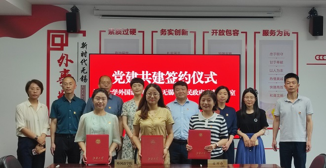 双方签订《江南大学外国语学院与无锡市外办共建协议》《江南大学外国语学院党委与无锡市外办党委共建协议》《外国语学院英语系支部、研究生支部—市外办翻译支部共建协议》。