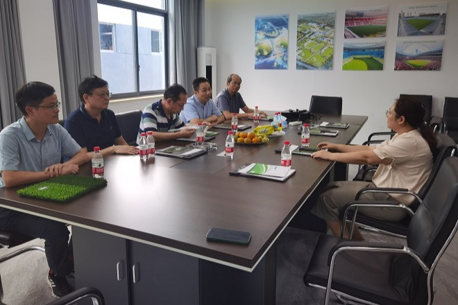 8月14日,调研团首先来到江苏省专精特新“小巨人”企业江苏威腾体育产业股份有限公司。威腾公司连续两届被评为国家级高新技术企业,企业产品70%远销欧美市场,并得到世足协官方认可,被评定江苏省体育产业示范单位、无锡市独角兽入库企业等。方文开介绍了外国语学院的历史沿革、师资队伍、人才培养,学科建设、未来发展等方面的情况,以及访企拓岗工作的重要意义。他强调,学院以访企拓岗专项行动为契机,以提高人才培养质量为目标,以促进毕业生就业为核心,就业实习基地的建立将成为外院学子社会实践、提升素质的良好平台,将成为双方进一步合作的重要抓手。