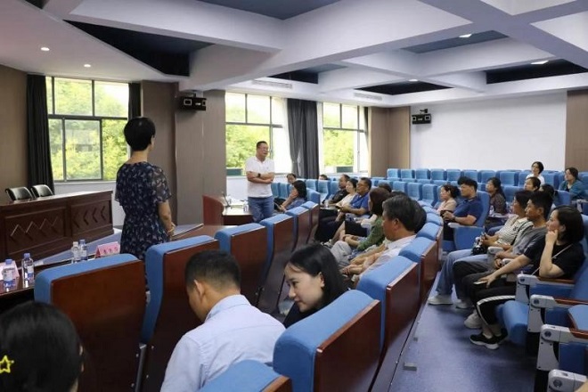 8月31日,外国语学院2023级新生家长见面会在君金报告厅举行。外国语学院党委书记李荣华,党委副书记刘伯贤,分团委书记顾海星,辅导员苗文建、朱家烨以及2023级部分新生家长参加了本次见面会。