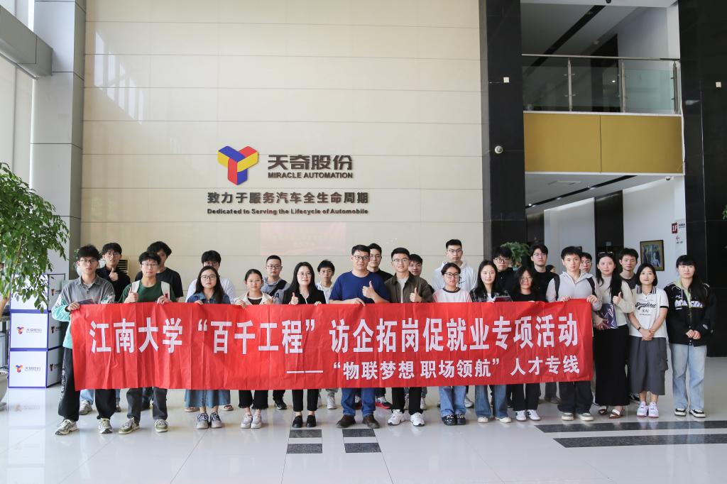 为落实教育部“访企拓岗促就业”专项行动工作部署和要求,深化院企合作,拓宽毕业生就业渠道,4月23日,物联网工程学院研究生辅导员陆奕君、本科生辅导员曾磊带领20余名本硕学生走进天奇自动化工程股份有限公司(以下简称“天奇股份”)开展“访企拓岗促就业”专项行动。天奇股份人力资源部部长兼研修院副院长杨玲燕、电气设计分院院长李进伟、人力资源部经理夏欢等出席本次活动。