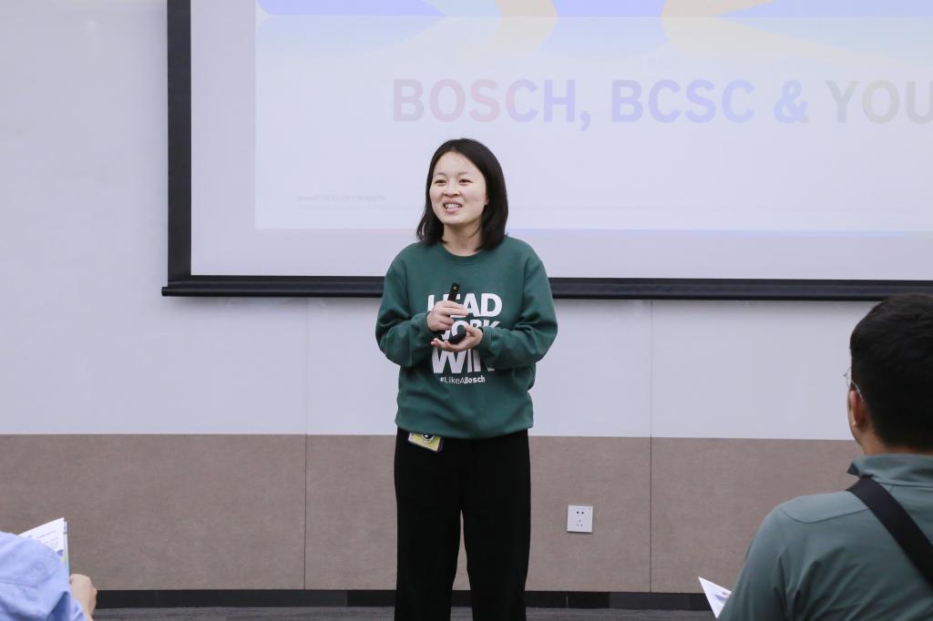随后,史伟杰现身说法,以“过来人”身份讲述职业成长故事。他从自己的择业经历出发,介绍了选择博世的理由,以自身职业轨迹为坐标,分享了从校园到职场的进阶路径。他指出“在博世,技术研发与产业落地始终并行,从算法优化到产线部署,每一步都能感受到博世对技术严谨性和商业价值的双重追求,完善的技术培训体系、以人为本的企业文化,为新人提供了快速成长的土壤。”面对学弟学妹,他真诚呼吁建议:“博世既有百年企业的技术积淀,又有拥抱变革的敏捷基因,如果你渴望用技术创造影响力,博世一定是值得加入的‘梦想实验室’。”