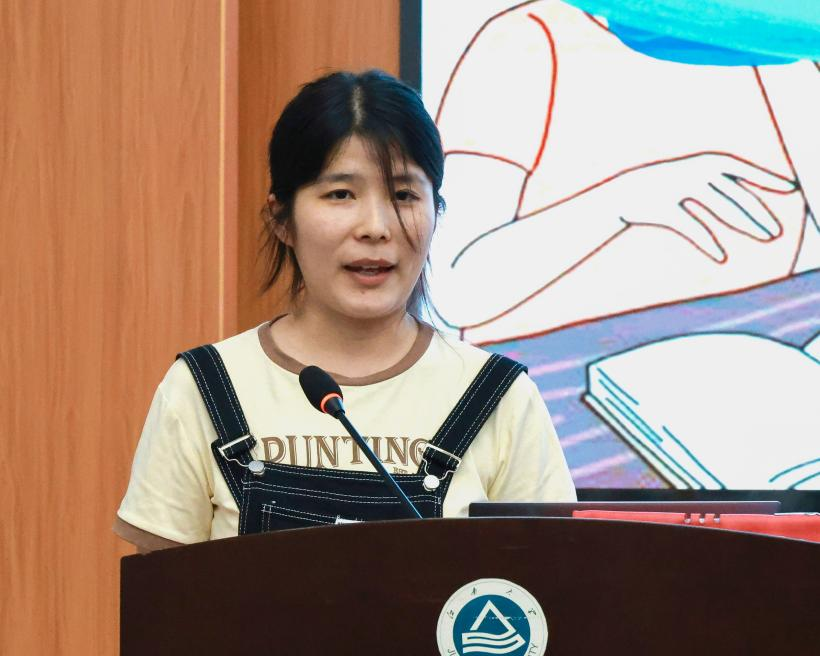 分享环节,优秀寝室长代表杨丽然上台交流经验。杨同学分享了如何通过沟通和倾听帮助情绪低落的室友走出困境的故事,也回忆自己积极应对考研焦虑等不良情绪的心理成长历程,让在场的同学们深受启发。此外,她结合心理委员工作实践提出了四点建议:真诚建立信任关系、细心观察心理变化、设计丰富心理活动、定期沟通寻求老师专业建议。