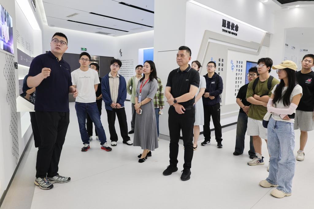 首先,张修源带领师生参观了企业展厅,详细介绍了公司的发展历程、竞争优势、企业文化等。信捷电气作为国内自动化设备研发制造前沿企业,在工业控制、智能驱动、机器视觉等领域拥有领先的技术实力和丰富的行业经验,近年来也充分展现出对标国际一流企业的决心。张修源结合展厅内的产品展示和案例演示,生动讲解了公司在智能制造领域的创新应用,让学生们近距离感受到物联网技术与工业自动化的深度融合。接下来,师生们走进信捷电气的产品检验实验室,在实验室负责人的讲解下,了解了产品从研发到量产的全流程质量检测标准,包括可靠性测试、环境适应性测试等关键环节,见证了企业严格的质量管控流程。