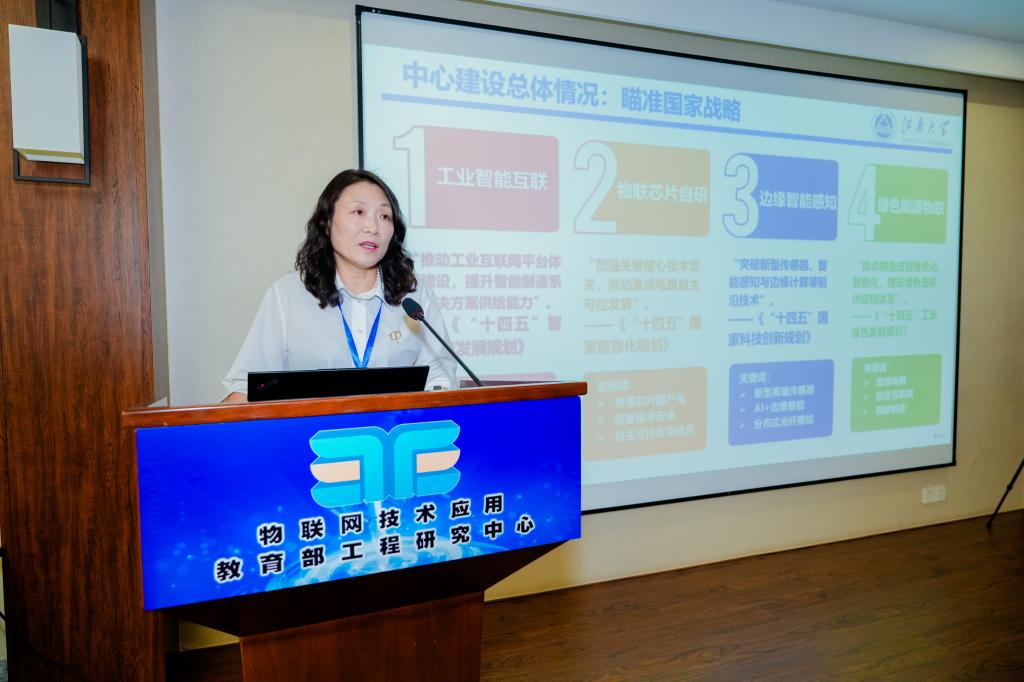 在工程中心研究方向汇报环节,工程中心骨干教师代表王子赟、虞致国、程菲、朱一昕分别代表各研究方向进行了专题技术汇报,报告聚焦工业物联网、物联网芯片、物联协同感知、能源物联网等领域关键技术突破与典型场景示范应用,展现了中心强劲的科研创新和工程实践能力。