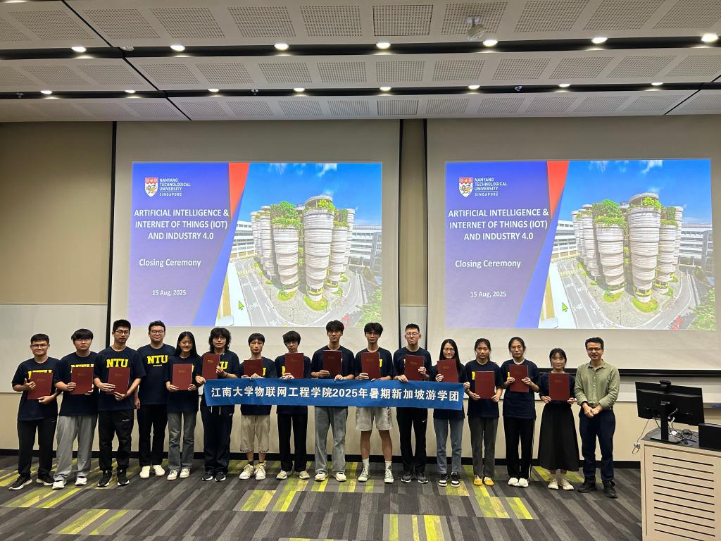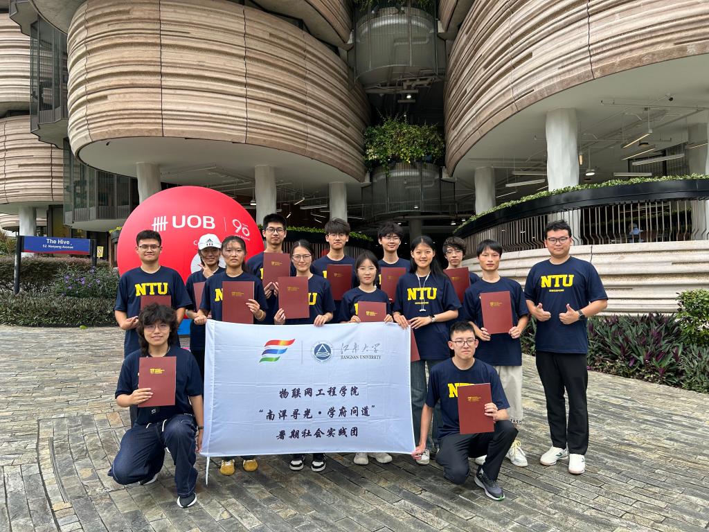 暑期,物联网工程学院游学实践团赴新加坡南洋理工大学开展2025年暑期游学实践活动。本次活动由辅导员沈滔带队,14名学生共同参与,圆满完成了一系列课程学习、学术参访与文化体验活动。