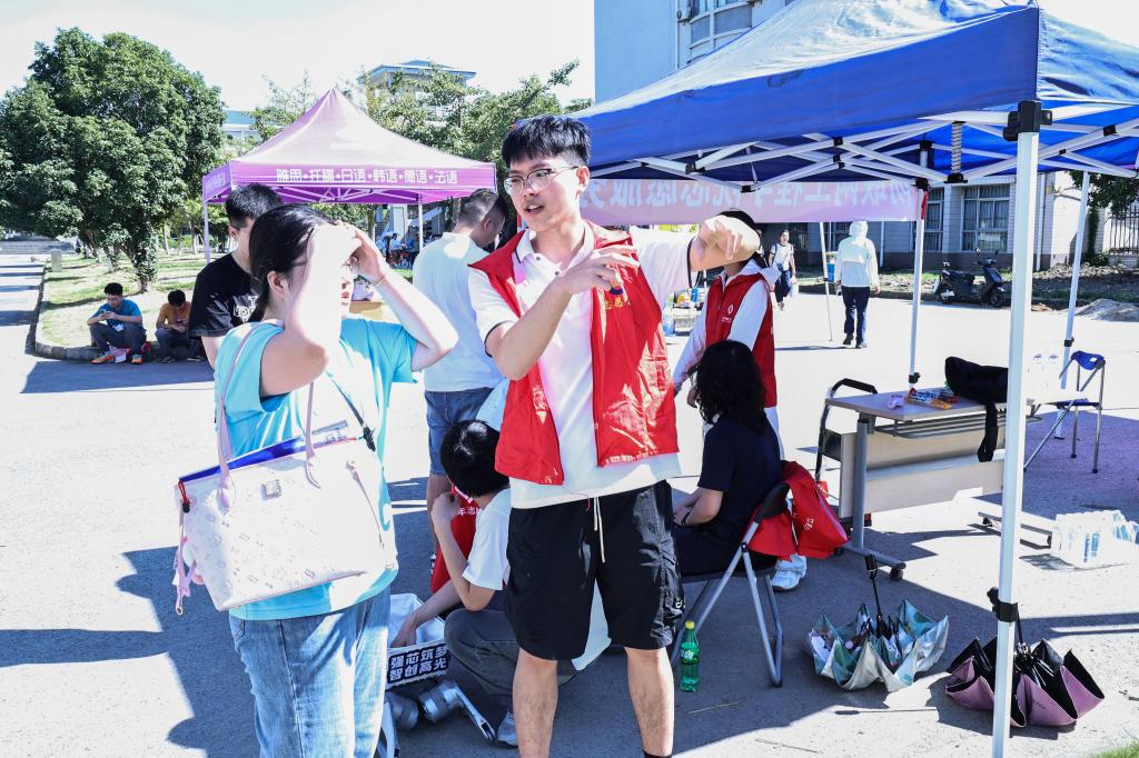 在迎新现场,学院特别设置了三大特色体验区。“新生寄语墙”上,410位本科新生的姓名巧妙组合成“唯实”院训,寓意逐梦的起点,承载青春的期许;“科创体验区”汇聚了物联学子历届科创竞赛成果,智能小车、创新作品引燃新生的科技热情;“传感互动区”通过体验惊喜刮刮乐、指纹成长树等特色活动,让新生在每一次的划动、点触中感受到学院最美好的祝愿。此外,学院还组织起一支热心的志愿者服务队,穿梭于报到现场与宿舍园区,耐心地向新生提供引导、指示和答疑等服务,用实际行动传递着学院最真挚的关怀与温暖的问候。