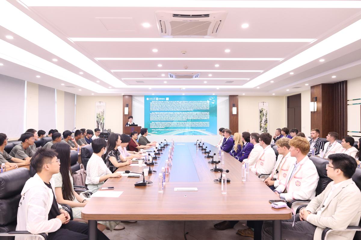 青年对话:从赛艇精神到未来愿景。在“双向沙龙”中,中外学子围绕“校园文化基因”“赛艇队的成长与团队精神”“学业与职业规划”等话题展开热烈讨论。牛津大学和伦敦大学学院的学生分享了初到中国的见闻,高度赞扬江大的科研氛围与学生活力,并表示此次交流带来深刻的文化共鸣。创新班同学则介绍了“笃学尚行,止于至善”的校训精神,并与英国伙伴探讨未来学术与职业发展路径。王胤对沙龙环节做出点评,肯定了沙龙话题中展现出的中外青年思维碰撞,希望为跨文化交流与未来合作积累宝贵经验。